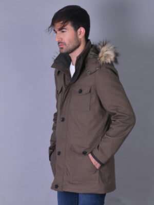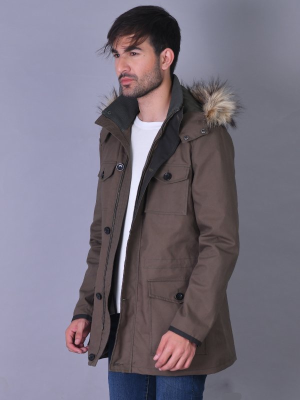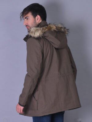 Men’s Brown Cotton Fur Hooded Jacket